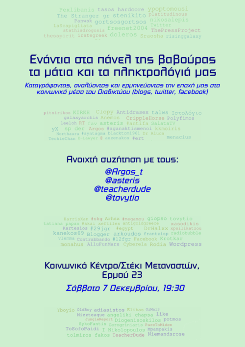 Καταγράφοντας, αναλύοντας και ερμηνεύοντας την εποχή μας στα κοινωνικά μέσα του Διαδικτύου (blogs, twitter, facebook) - Ανοιχτή συζήτηση με τους:
