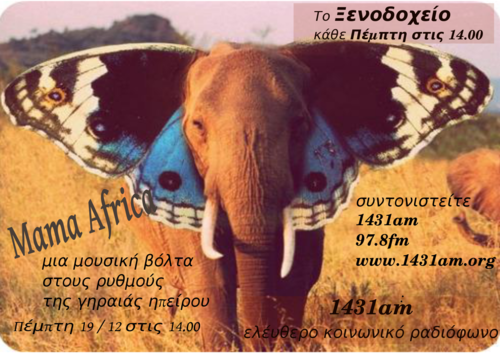 Την Πέμπτη 19/12 στις 14.00 το "Ξενοδοχείο" θα κάνει μια μουσική βόλτα σε αφρικάνικους ρυθμούς.