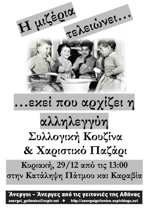 Γιορτινή Συλλογική Κουζίνα - Χαριστικό Παζάρι από τη συλλογικότητα άνεργες/οι από τις γειτονιές της αθήνας στην Καταληψη Πατμου - Καραβία (κοντά στη φοιτητική εστία πατησίων).