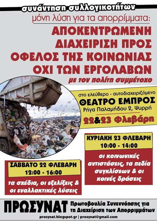 για τη διαχείριση των απορριμμάτων το διήμερο 22 και 23 Φλεβάρη 2014