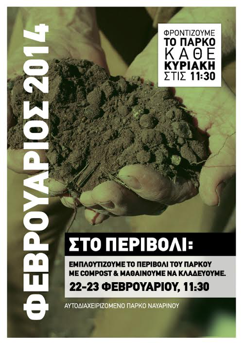 Σαββατοκύριακο 22 και 23/2 στο πάρκο Ναυαρίνου με εμπλουτισμό του χώματος, προετοιμασία του περιβολιού, κλαδέματα, συγκρότηση της ομάδας κατασκευών - την Κυριακή αυτό- και άλλες… εκπλήξεις!