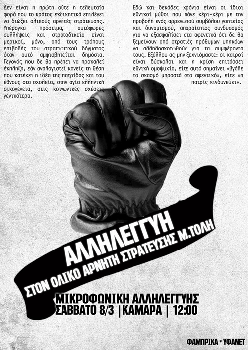 Δράσεις αλληλεγγύης στον αρνητή στρατευσης Μ.Τόλη