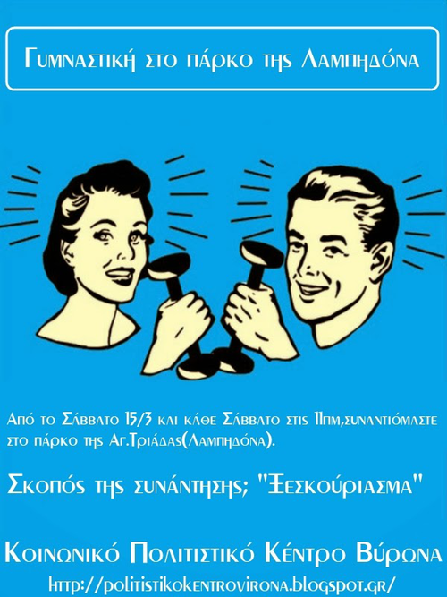 Από το Σάββατο 15/3 και κάθε Σάββατο στις 11πμ, συναντιόμαστε στο πάρκο της Αγ.Τριάδας(Λαμπηδόνα).