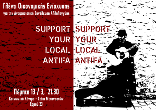 Τα έσοδα της βραδιάς θα διατεθούν για τα έξοδα των δράσεων της Αντιφασιστικής Συνέλευσης Αλληλέγγυας (ΑΣΑ).