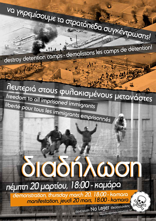 η ΕΣΕ Θεσσαλονίκης στηριζει και συμμετέχει στην πορεία ενάντια στα στρατόπεδα συγκέντρωσης που διοργανώνει η συνέλευση no lager Θεσσαλονίκης