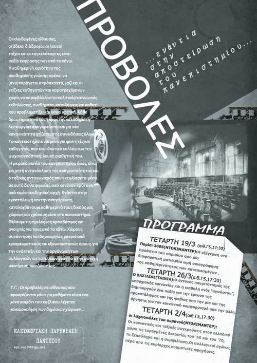 Οι προβολές σε αίθουσες που προορίζονται μόνο για μαθήματα είναι ένα μόνο κομμάτι του παζλ που λέγεται «οικειοποίηση των δημόσιων χώρων»…