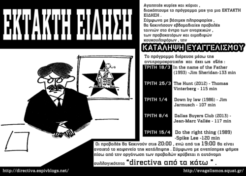 Εβδομαδιαίες προβολές ταινιών στην Κατάληψη Ευαγγελισμού ,κάθε Τρίτη στις 20:00