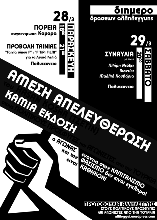 Πρωτοβουλία αλληλεγγύης στους πολιτικούς πρόσφυγες και αγωνιστές από την Τουρκία