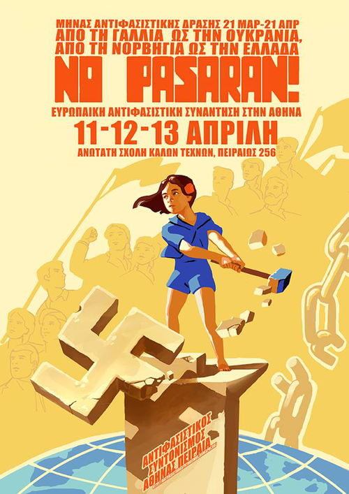 Στις 11, 12 και 13 Απρίλη οι αντιστάσεις συναντιούνται στην Αθήνα σε ένα κλίμα γιορτινής ατμόσφαιρας, με πολιτικές εκδηλώσεις, συναυλίες και συζητήσεις με αντιφασιστικές συλλογικότητες, δικτυώσεις και συνελεύσεις από την Ευρώπη. Συζητάμε, ανταλλάζουμε εμπειρίες και οργανώνουμε τη δράση μας σε ευρωπαϊκό επίπεδο. Δίνουμε ένα ηχηρό μήνυμα συντονισμένου αγώνα εναντίον του φασισμού, του ρατσισμού και του σεξισμού.