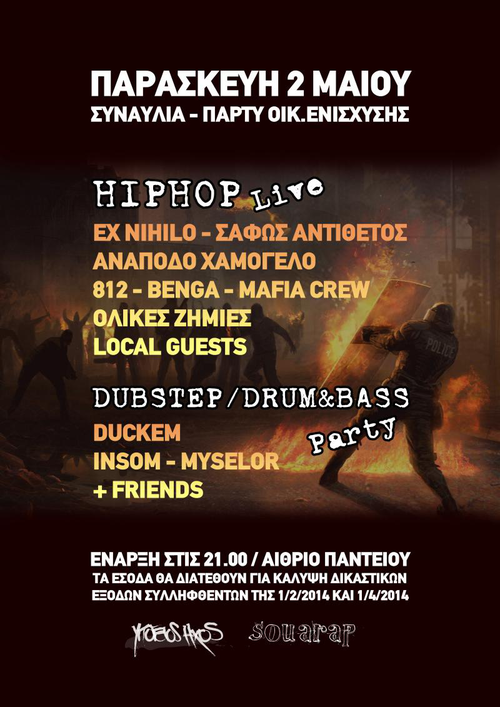 Τα έσοδα θα διατεθούν για την κάλυψη δικαστικών εξόδων συλληφθέντων της 1/2/2014 και 1/4/2014.