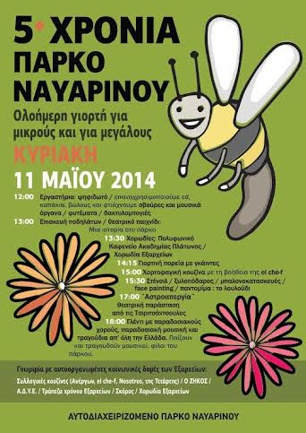 Κυριακή 11/05/2014 από τις 12:00 το μεσημέρι, 5+ Χρόνια Πάρκο Ναυαρίνου Ολοήμερη γιορτή στο πάρκο!