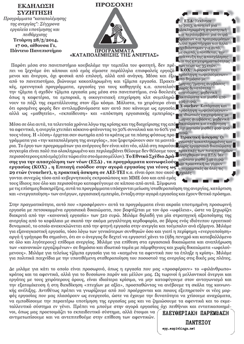 Εκδήλωση-συζήτηση: Προγράμματα "καταπολέμησης της ανεργίας"