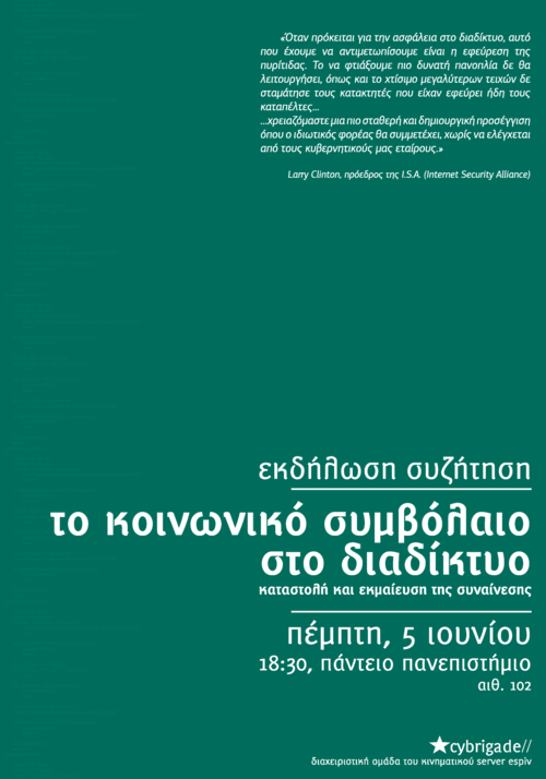 Εκδήλωση-συζήτηση: Το κοινωνικό συμβόλαιο στο διαδίκτυο