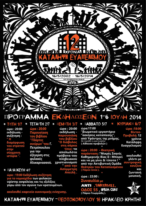 -ώρα :18:00 Βίντεο-προβολή: 12 χρόνια Κατάληψη Ευαγγελισμού