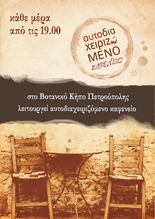 Ξεκινάμε σήμερα Κυριακή με ρεμπέτικο γλέντι αφού ....."Το Συνεργατικό Καφενείο του Βοτανικού Κήπου σας προσκαλεί την Κυριακή 06/07/2014 στις 8:00 μ.μ.σε ρεμπέτικο γλεντοκόπι, με το συγκρότημα ΜΠΑΓΙΟΚΟ.