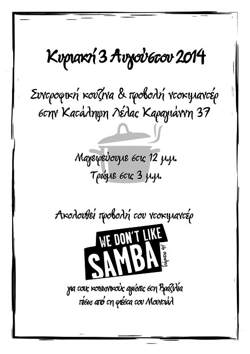 Συντροφική κουζίνα και προβολή του ντοκιμαντέρ "We don't like samba"