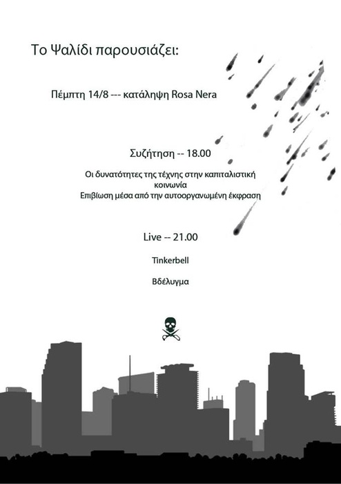 Η συλλογικότητα αυτοοργανωμένης έκφρασης ΤΟ ΨΑΛΊΔΙ παρουσιάζει στις 14 αυγούστου, στην καταληψη ΡΟΖΑ ΝΕΡΑ: