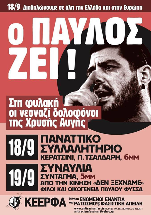 Ο ΠΑΥΛΟΣ ΖΕΙ! 18/9 Διαδηλώνουμε σε όλη την Ελλάδα και στην Ευρώπη
