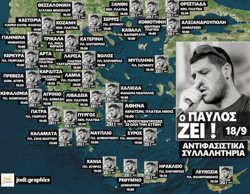 Όλοι στις αντιφασιστικές συγκεντρώσεις στη μνήμη του Παύλου Φύσσα, Πέμπτη 18/9