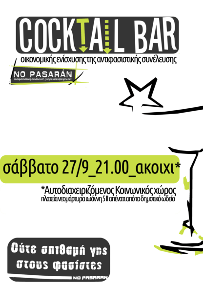cocktail bar οικονομικής ενίσχυσης της αντιφασιστικής συνευσης no pasaran
