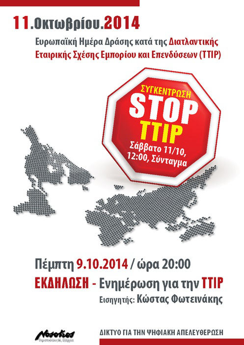 11/10 Ευρωπαική Ημέρα Δράσης κατα της Διατλαντικής Εταιρικής Σχέσης Εμπορίου και Επενδύσεων(TTIP)