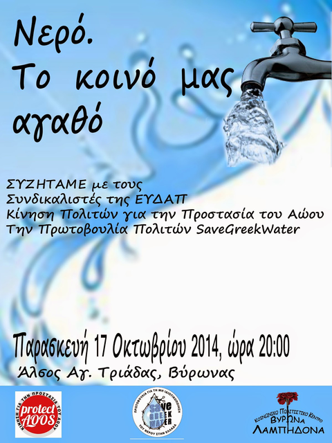 με συνδικαλιστές της ΕΥΔΑΠ, την Κίνηση Πολιτών για την Προστασία του Αώου και την Πρωτοβουλία Πολιτών SaveGreekWater, μαζί με όλους/όλες εσάς