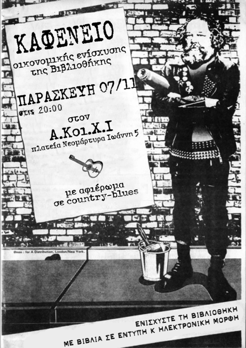 καφενείο οικονομικής ενίσχυσης της βιβλιοθήκης του στεκιού υπό country και blues ήχους.