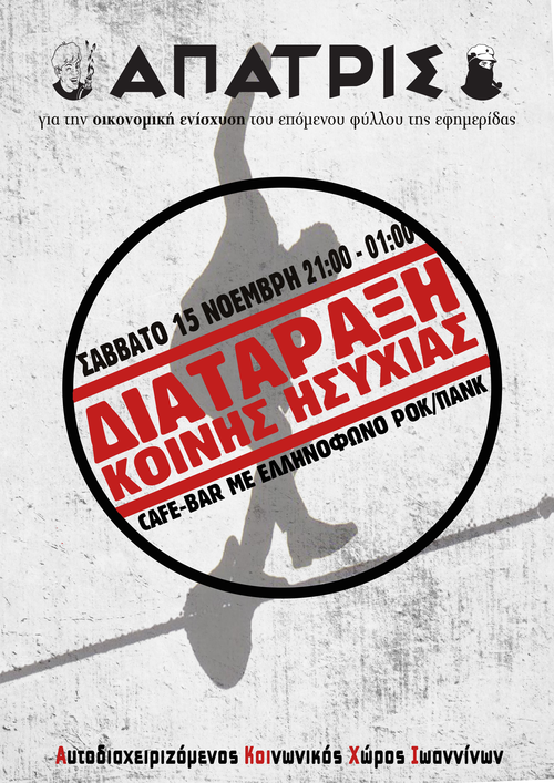 Καφε Μπαρ οικονομικής ενίσχυσης της εφημερίδας δρόμου Άπατρις, από τη Συντακτική Ομάδα Ιωαννίνων, με ελληνόφωνο ροκ/πανκ