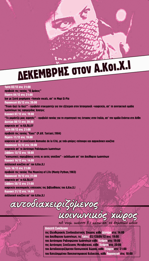Παρασκευή 05/12 στις 20.00 : Προβολή του ντοκυμαντέρ «From Gazi to Gezi» για την εξέγερση στην Ινστανμπούλ. Θα ακολουθήσει καφενείο. Από τη συντακτική ομάδα Ιωαννίνων της εφημερίδας Άπατρις.