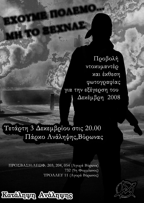 Προβολή ντοκυμαντέρ για τη εξέγερση του Δεκέμβρη 2008 και έκθεση φωτογραφίας.
