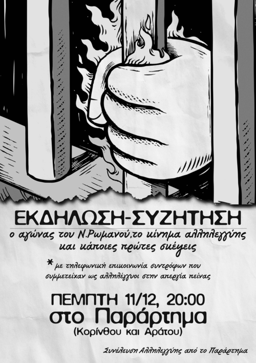 Συζήτηση με κρατούμενους συντρόφους για την απεργία πείνας του Νίκου Ρωμανού