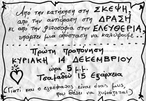 Κάλεσμα την Κυριακή 14/12 στην Τσαμαδού 15,Εξάρχεια