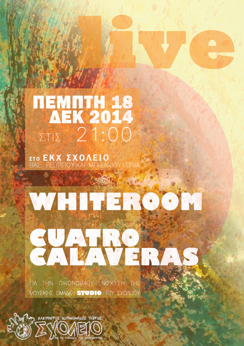 Συναυλία με τους Whiteroom και τους Cuatro Calaveras. Τα έσοδα θα διατεθούν για την αγορά εξοπλισμού ηχογράφησης και για την βελτίωση της υπάρχουσας υποδομής του στούντιο. Ακολουθεί το κείμενο της ομάδας :