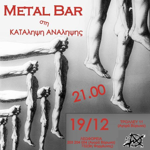 Για οικονομική ενίσχυση του χώρου και προπάντων για ψυχαγωγια,ζύμωση και επικοινωνία σας περιμένουμε το βράδυ της Παρασκευής στην κατάληψη''Ανάληψη''(πρώην αναψυκτήριο) στο πάρκο Ανάληψης του Βύρωνα με μουσικές επιλογές απο όλο το φάσμα της μέταλ σκηνής!