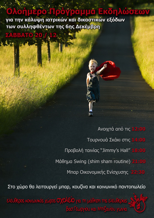 Τα έσοδα θα διατεθούν για την κάλυψη των δικαστικών εξόδων των συλληφθέντων της 6/12 και για ιατρικά έξοδα