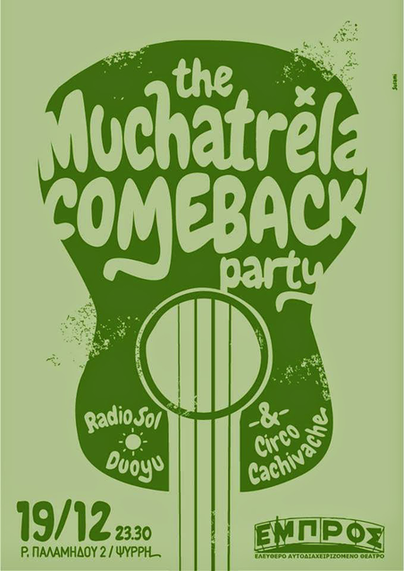 Παρασκευή 19 Δεκεμβρίου, 10:00 μ.μ. Παράσταση Cirko Cachivache & 11:30 μ.μ. The Muchatrela Comeback Party