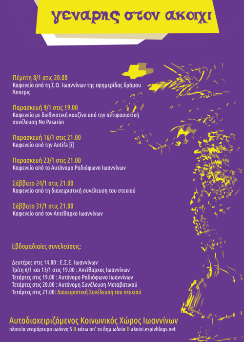Αυτοδιαχειριζόμενος Κοινωνικός Χώρος Ιωαννίνων ( ΑΚΟΙΧΙ ) Πλατεία Νεομάρτυρος Ιωάννη 5 (κάτω από το δημοτικό ωδείο)