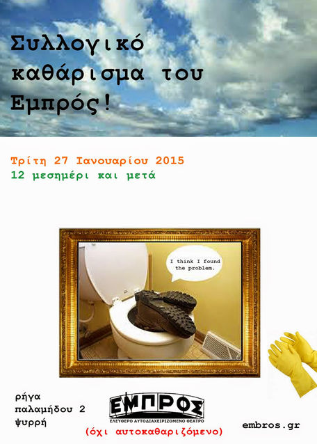 Σας και μας περιμένουμε για ένα συμμετοχικό καθάρισμα του Εμπρός! Αυτοδιαχειριζόμενο είναι, όχι αυτοκαθαριζόμενο!