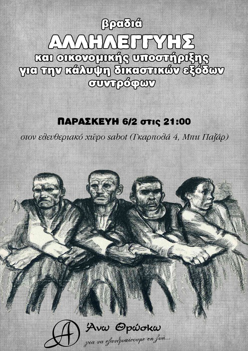 Βραδιά αλληλεγγύης και οικονομικής υποστήριξης για την κάλυψη δικαστικών εξόδων συντρόφων.
