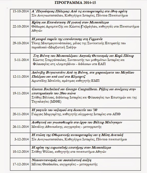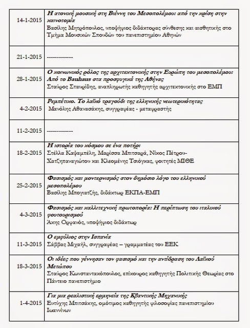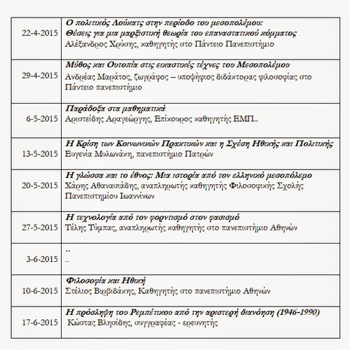 Το ολοκληρωμένο πρόγραμμα του κύκλου ανοικτών μαθημάτων Ιστορίας και Φιλοσοφίας