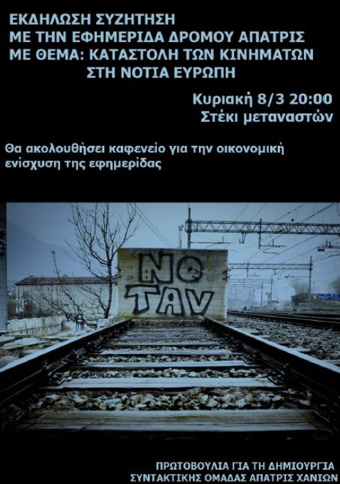 ΕΚΔΗΛΩΣΗ-ΣΥΖΗΤΗΣΗ ΜΕ ΤΗΝ ΕΦΗΜΕΡΙΔΑ ΔΡΟΜΟΥ ΑΠΑΤΡΙΣ ΜΕ ΘΕΜΑ: ΚΑΤΑΣΤΟΛΗ ΤΩΝ ΚΙΝΗΜΑΤΩΝ ΣΤΗ ΝΟΤΙΑ ΕΥΡΩΠΗ