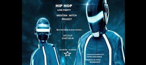 HIP HOP LIVE &PARTY μετα την ανασταση στο κατηλημενο αναψηκτιριο του παρκου αναληψης στο βυρωνα με MENTIRA WITCH PROJECT & Αfter drum-n-bass techno....party με dj DIFFER