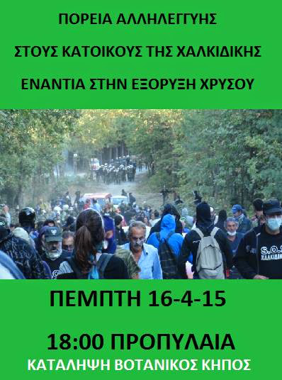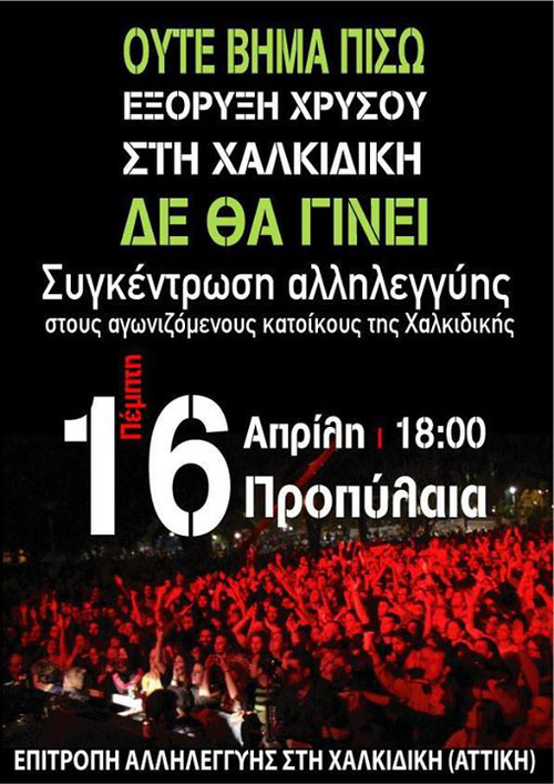 [Πέμπτη 16/4, 6μμ, Προπύλαια] διαδήλωση αλληλεγγύης στον αγώνα των κατοίκων της Χαλκιδικής κατά της εξόρυξης χρυσού