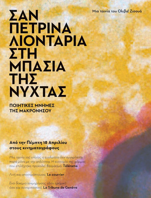 Η ομάδα κινηματογραφικών προβολών σας καλεί τηνΠέμπτη 23 Απριλίου στις 20:30 στην προβολή του ντοκιμαντέρ "Σαν Πέτρινα Λιοντάρια στην Μπασιά της Νύχτας" του Ελβετού ντοκιμαντερίστα Ολιβιέ Ζισουά