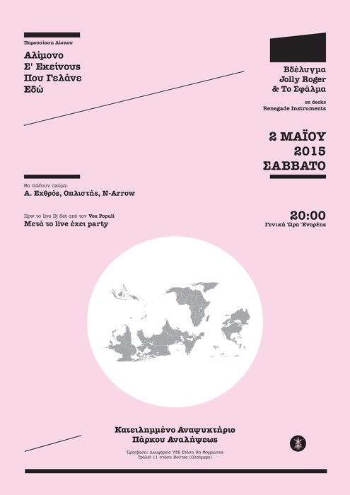 Στις 2 Μαίου, στο Κατειλημμένο Αναψυκτήριο Πάρκου Αναλήψεως (στο Βύρωνα), θα γίνει η παρουσίαση δίσκου του "Αλίμονο σ' εκείνους που γελάνε εδώ", από το Βδέλυγμα, τους Jolly Roger & Το Σφάλμα. Με τον Renegade Instruments στα Decks.