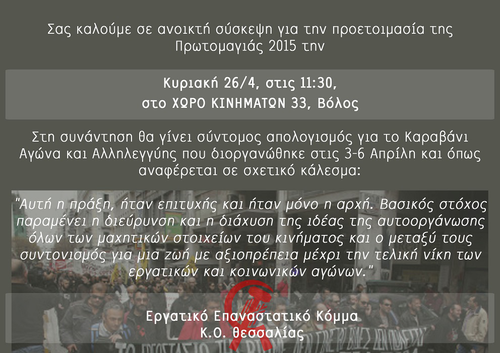 Σας καλούμε σε ανοικτή σύσκεψη για την προετοιμασία της Πρωτομαγιάς 2015 την