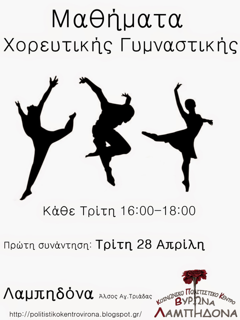Ελατε να διασκεδασουμε με χορευτικη γυμναστικη!Σκοπος μας ειναι να γεμισουμε θετικη ενεργεια...αλλα και να μαθουμε να χορευουμε σε ρυθμους διαφορετικων χορων.