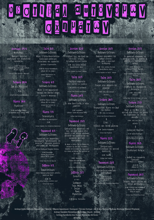 19:00 Αυτόνομο Στέκι Φιλοσοφικής (φουαγιέ νέας φιλοσοφικής, δίπλα στο αμφ.Β')