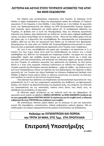 - ΑΜΕΣΗ ΑΠΕΛΕΥΘΕΡΩΣΗ ΤΩΝ ΤΕΣΣΑΡΩΝ ΤΟΥΡΚΩΝ ΑΓΩΝΙΣΤΩΝ!