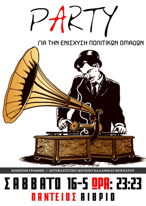 Παρτυ οικονομικης ενισχυσης των πολιτικων ομαδων Αντιφασιστικο Μετωπο Καλλιθεας/Μοσχατο και Κοκκινη Γραμμη στις 16/5